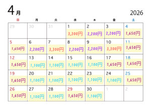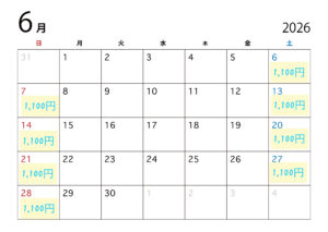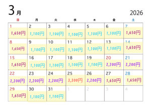 📅 2026年上半期の料金カレンダー